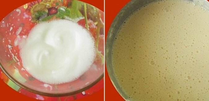 1. Umieść śmietankę, mleko i masło w niemetalowym naczyniu i wstaw do kuchenki mikrofalowej. Ustaw czas na 30-40 sekund, a w międzyczasie oddziel białka od żółtek.