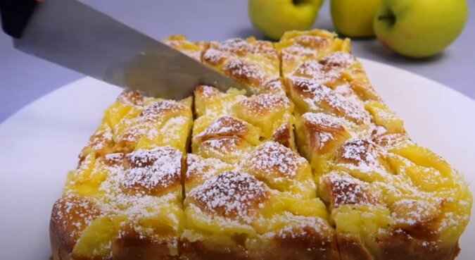 Ciasto jest bardzo delikatne dzięki jabłkom i klasycznemu kremowi.