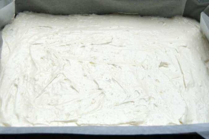 4. Ciasto przełożyć do lodówki i pokroić na porcje tuż przed podaniem.