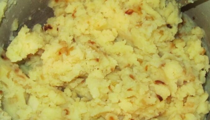 Teraz czas na nadzienie, ugotuj ziemniaki w posolonej wodzie i zrób z nich puree. Cebulę drobno pokrój, podsmaż do miękkości i dodaj do puree.