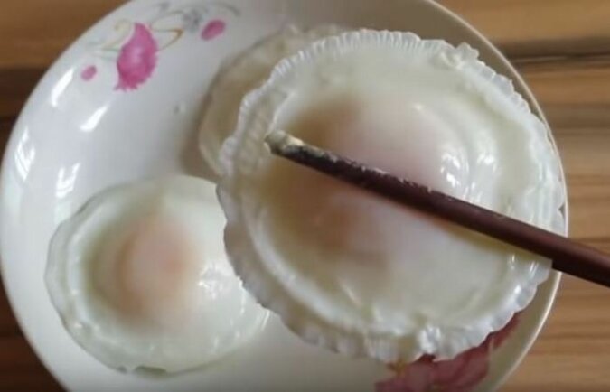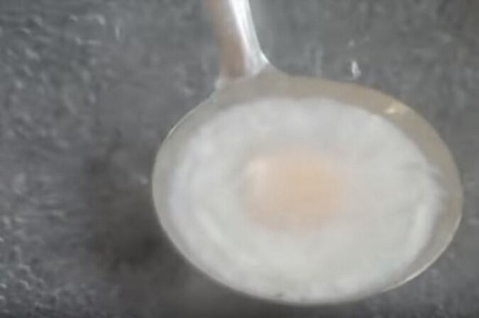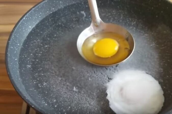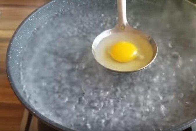 Gdy woda się zagotuje, można w niej zanurzyć chochlę z jajkiem.