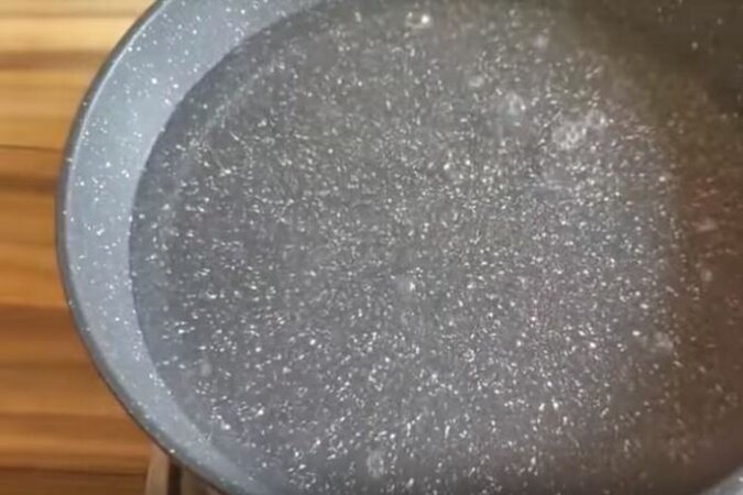 Najpierw napełnij patelnię zwykłą wodą na około 5-7 cm.