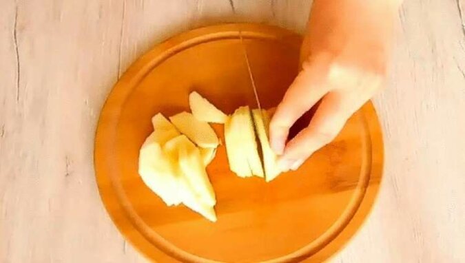 Jabłka obierz, wytnij środek i pokruj w plasterki.