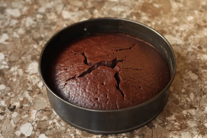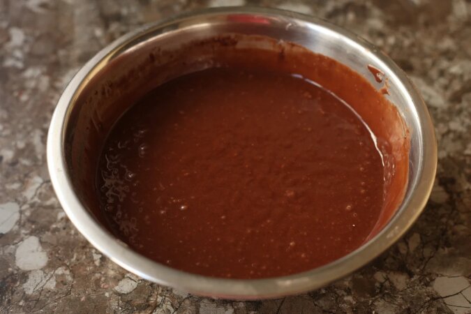 Następnie wlej olej i natychmiast całość wody, podgrzaną do temperatury pokojowej. Zamiast wody można użyć soku owocowego lub herbaty lub słabej kawy. Ale opcja z samą wodą jest najbardziej ekonomiczna.