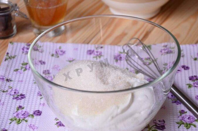 Śmietanę należy wymieszać z cukrem.