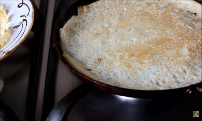 4. Raz posmaruj patelnię olejem słonecznikowym lub smalcem. Smaż naleśniki tylko z jednej strony!
