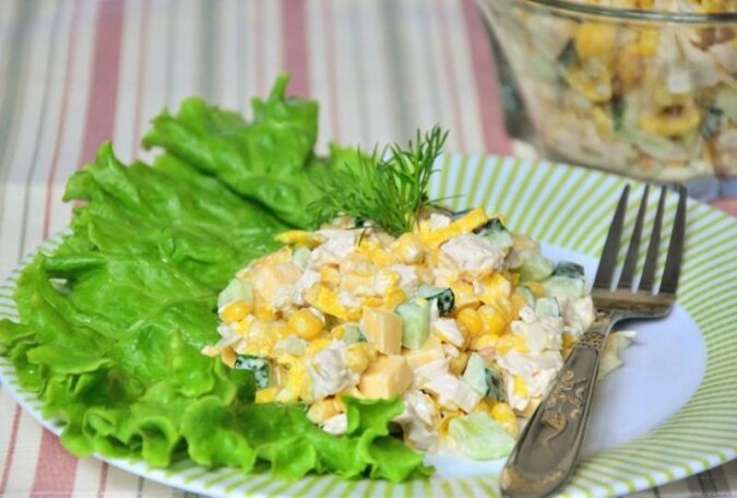 Pyszna domowa sałatka z prostych produktów. Jest to sałatka, która wszystkim smakuje!
