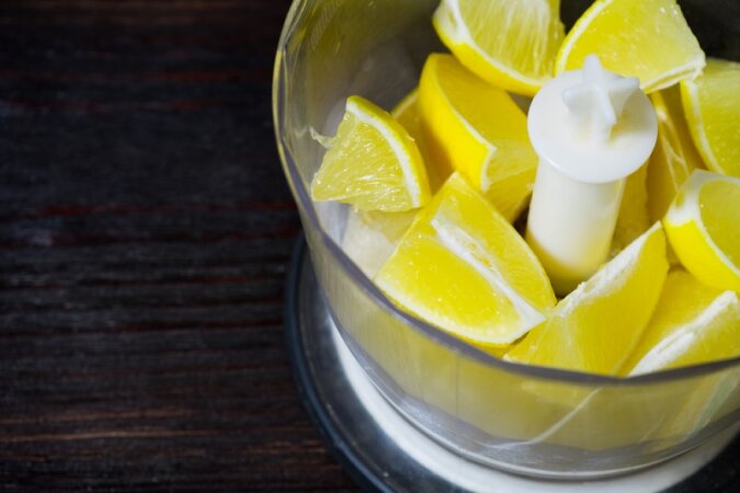 Cytrynę ze skórą zmiel w blenderze, a zatem dodaj do ciasta.