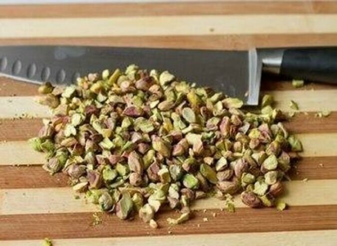 3. Posiekaj grubo orzechy i wsyp do czekolady, wymieszaj.