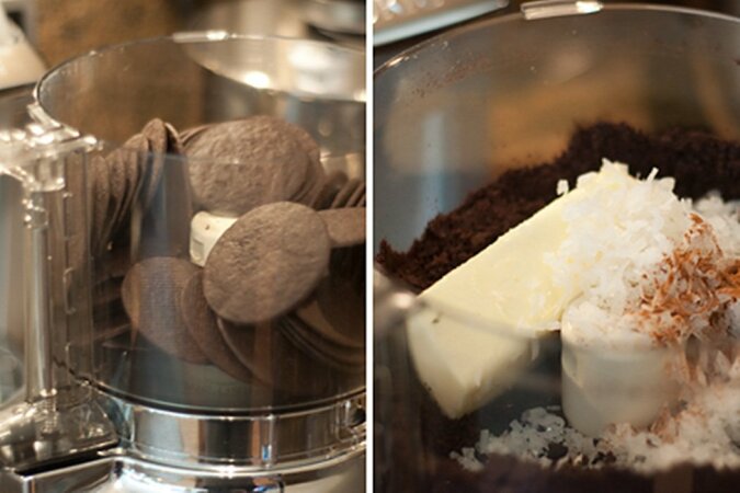 1. Wrzuć herbatniki do blendera i powoli dodawaj do nich resztę potrzebnych składników.