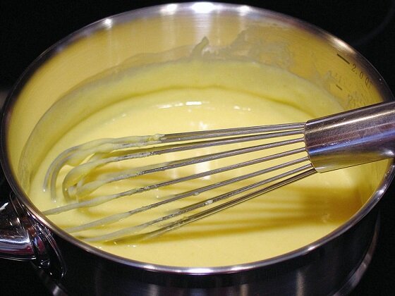 4. Shłódź budyń, a następnie połóż go na cieście.