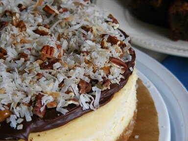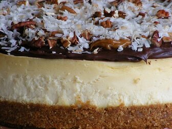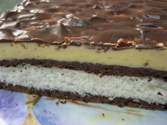 3. Posyp ciasto wiórkami kokosowymi dla smaku.