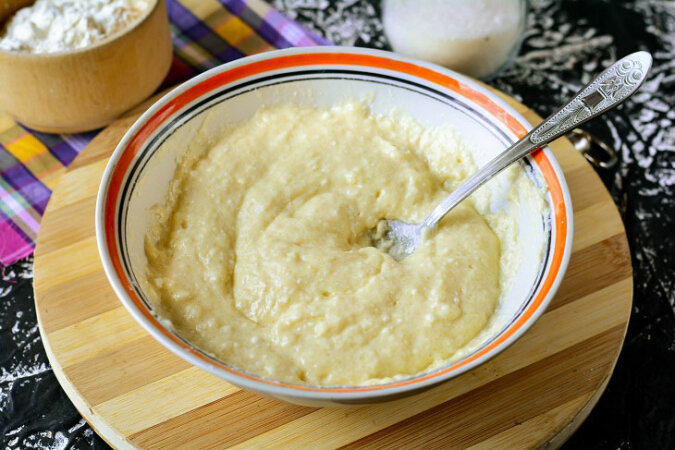 5. Ciasto wymieszać tak, aby nie było grudek - konsystencja powinna przypominać kwaśną śmietanę.