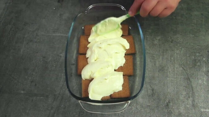 Krem waniliowy połączony z ulubionymi herbatnikami i lukrem - najlepszy dodatek do kawy, nieodłączny element spotkań w gronie przyjaciół i rodzinnych uroczystych obiadów. Warte spróbowania! Ale ostrzegam: zdobędzie mistrzostwo pośród innych deserów, istnieje ryzyko zapomnienia o tradycyjnym „Tiramisu” i „Napoleonie”.