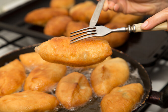 Sekret tych pierożków polega na tym, że nadzienie przypomina solone grzyby. Na szczególną uwagę także zasługuje ciasto. Powinno łatwo się zagniatać, a praca z nim powinna być lekka. W przepisie nie ma drożdży, ale pierożki trochę powiększą się podczas smażenia. To szybkie i smaczne danie.