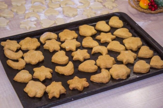 Ciasta rozwałkować w warstwę o grubości jednego centymetra.