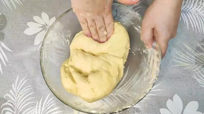 Do masy wsyp mąkę, proszek do pieczenia i cukier waniliowy. Zagnieć miękkie ciasto.