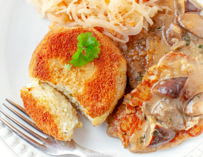 Kotlety możesz podawać z sosem pieczarkiwych, sosem grzybowym lub surówką.