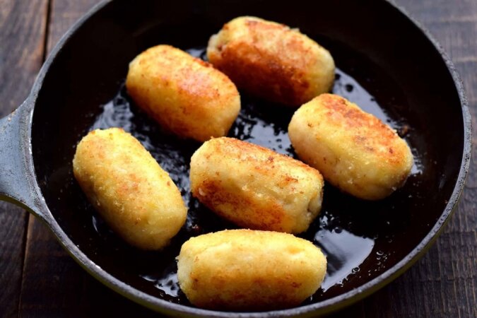 10. Na patelnię wlej kilka łyżek oleju, podgrzej, połóż zrazy ziemniaczane. Smaż na średnim ogniu na złoty kolor ze wszystkich stron.
