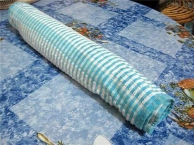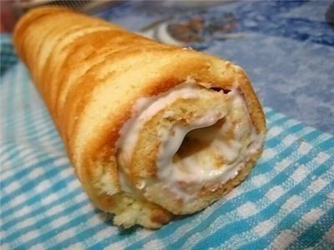7. Posmaruj kremem (o dowolnym smaku). Zwiń roladę i pozostaw go do nasączenia.