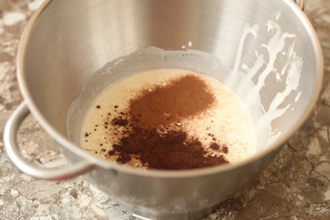 Następnie dodaj cynamon i kakao. Kakao powinno być wysokij jakości, najlepiej alkalizowane. Kakao do napojów w tym przypadku nie zadziała.