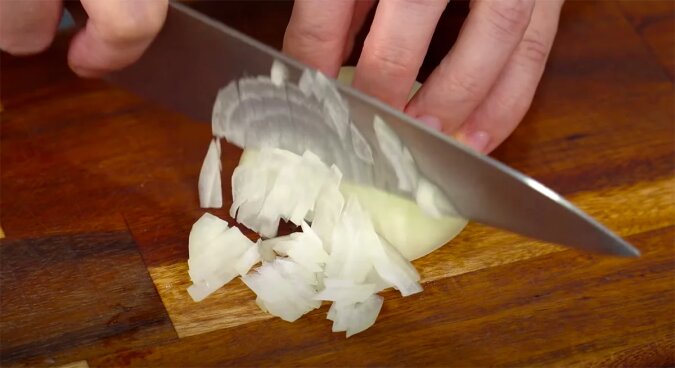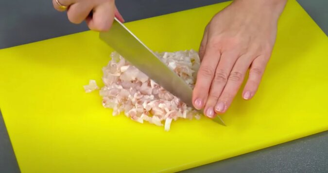 Nie potrzebujesz tutaj nawet maszynki do mięsa. Kroję filet rybny najdrobiej, jak to możliwe.