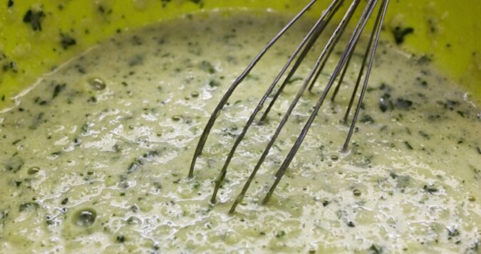 Aby upiec naleśniki, podziel mieszaninę na trzy równe części.