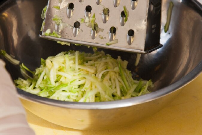 1/2 cukinii zetrzyj na tarce o grubych oczkach.