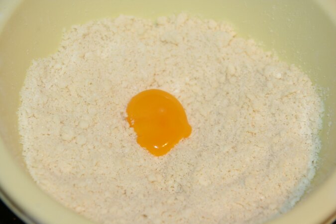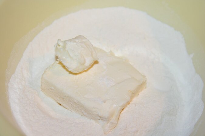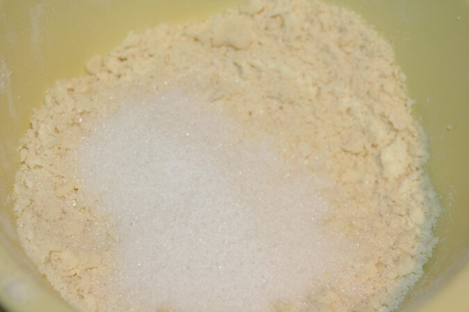 Następnie dodaj miękkie masło (należy zetrzeć dłońmi, aż utworzą się płatki).