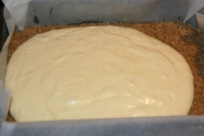 6. Wlej drugi rodzaj ciasta na nadzienie i wstaw do piekarnika na 25 minut. Gotowość sprawdź wykałaczką.