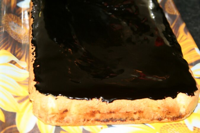 Na koniec dodaj olej i mieszaj do uzyskania gładkości. Niech polewa lekko ostygnie, a następnie delikatnie rozprowadź ją na cieście.