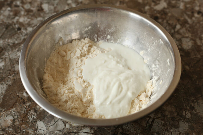 Teraz do miski wlewamy kefir.