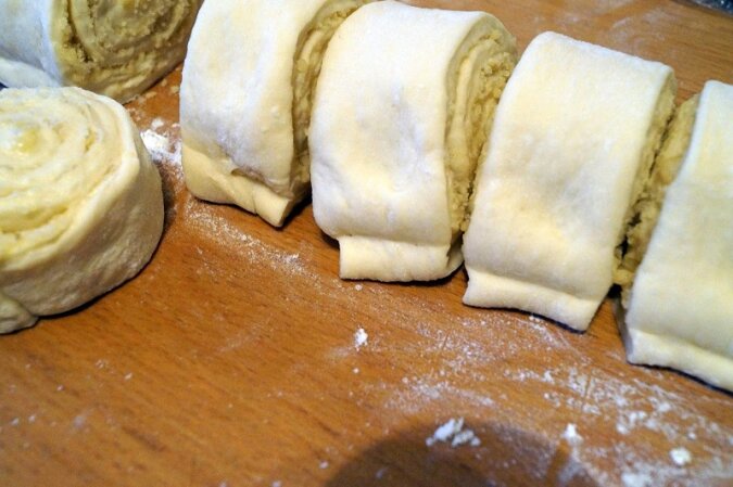 Wtedy pokroić rolkę na kawałki o grubości 1–2 cm.