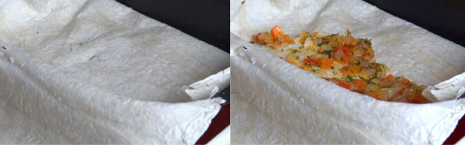 Ale ponieważ tego rodzaju lasagna uważana jest za „leniwą”, to każdą warstwę trzeba zawinąć drugą częścią arkusza.
