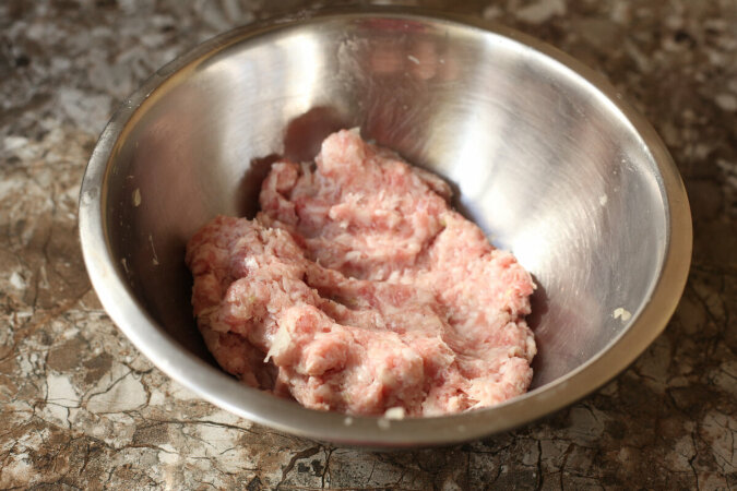 Nie będziesz musiał długo bawić się kapustą, więc najpierw przygotujmy nadzienie. Włóż mięso mielone do odpowiedniej miski (dowolnej według własnych upodobań), dodaj sól i pieprz. W razie potrzeby można doprawić do smaku innymi przyprawami - czosnkiem, koperkiem, papryką. Dodajemy również obraną i posiekaną cebulę - możesz ją zetrzeć na grubej tarce, pokroić lub zmielić w blenderze, jeśli jest to dla ciebie wygodniejsze, i 2 łyżki bułki tartej.