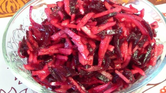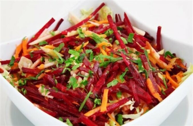 Tego rodzaju sałatka owocowo-warzywna jest bardzo popularna wśród osób, którzy stosują diety odchudzające. Ponadto sałatka zawiera dużo witamin, a słodko-kwaśne jabłko dodaje jej soczystości, poprawiając również smak buraków.