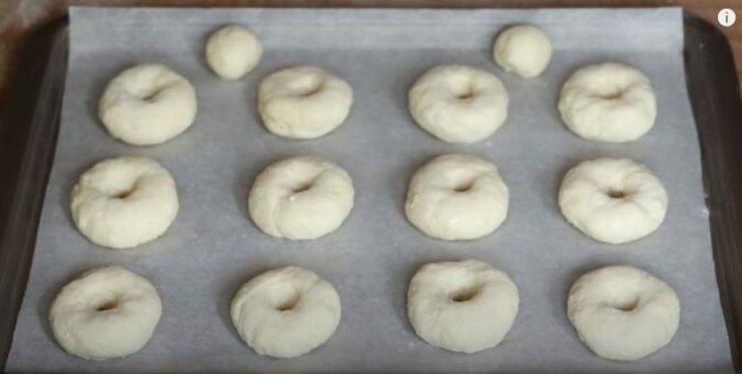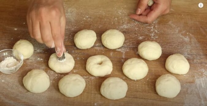 Z każdego kawałka formujemy kulki. Następnie wycinamy otwór na środku każdego kawałka. Można to zrobić za pomocą dyszy do ciasta.