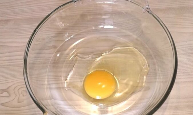 Kefir lekko podgrzej na średnim ogniu do temperatury 35–40 stopni Celsjusza. Następnie dodaj ubite jajka i wszystko dobrze wymieszać.