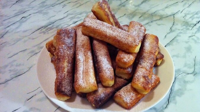 Batoniki z twarogiem należy usmażyć na patelni po obu stronach, aby uzyskać złotą skórkę.
