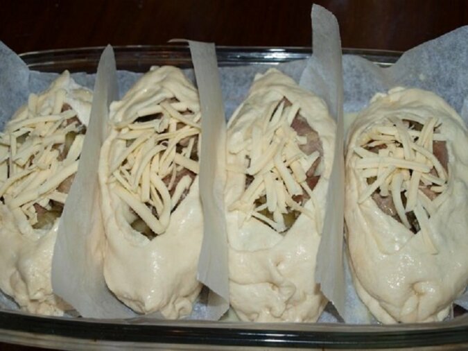 Ściśnij boki ciasta, a następnie gotowe łódeczki poukładaj na blasze do pieczenia pokrytej pergaminem. Piec należy w piekarniku nagrzanym do temperatury 180 stopni Celsjusza przez 25 minut.