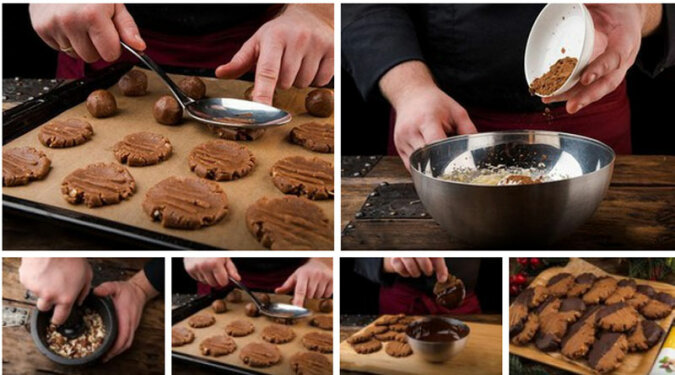 8. Zanurz jedną stronę ciasteczek w czekoladzie i odstaw do lodówki na 15 minut.