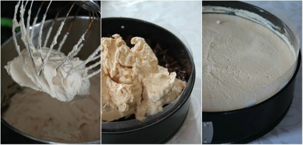 Umieść mus na podłoże ciasta, wykonaj wygładanie jego warstwy za pomocą silikonowej szpachelki. Ciasto włóż do zamrażarki na około 1 godzinę.