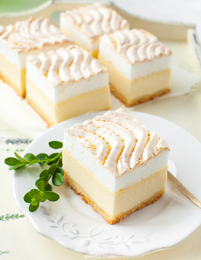 6. Wylanie masy na kruche ciasto, ponowne wstawienie do piekarnika rozgrzanego do temperatury 180 stopni oraz pieczenie przez około trzy kwadranse, żebymasa się ścięła.