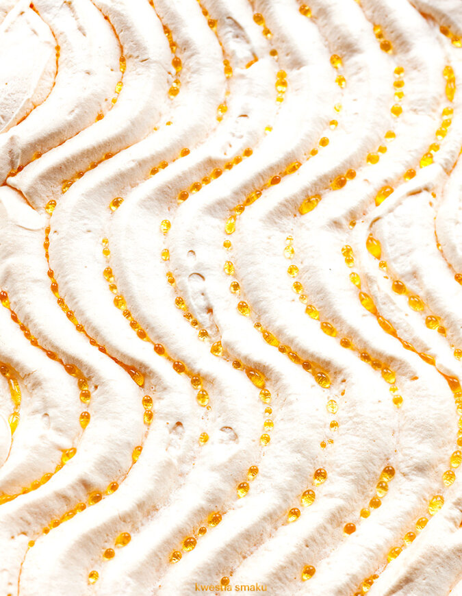 1. Ubijanie niałek z dodatkiem cukru przez około 10 min, żeby powstała sztywna oraz gęsta piana.