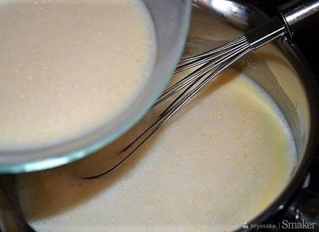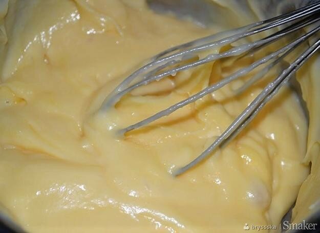 3. Dodanie żółtka oraz budyni do reszty mleka oraz zmiksowanie.