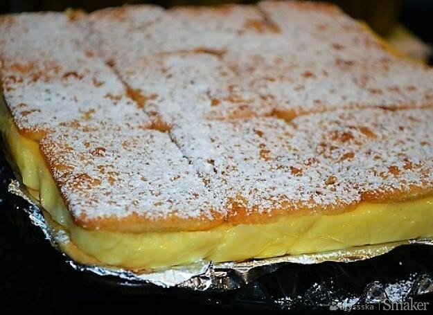 9. Posypanie ciasta cukrem pudrem oraz podanie go gościom.