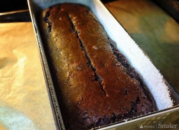8. Wstawienie ciasta do piekarnika rozgrzanego do temperatury 180 stopni oraz pieczenie go przez ok godzinę, żeby patyczek był suchy (grzanie góra i dół, środkowy poziom).