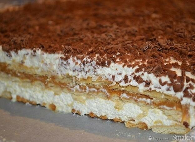 Łatwe w przygotowaniu ciasto, które posmakuje zarówno dzieciom, jak i dorosłym. Nie potrzebujesz do niego piekarnika, ponieważ prawdziwe ciasto zastępują herbatniki. Najlepiej przygotować je wieczorem i na noc odstawić do lodówki. Pyszny deser gotowy!