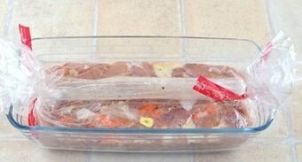10. Następnie włóż roladę do lodówki. Dopiero wtedy można usunąć rękaw do pieczenia.