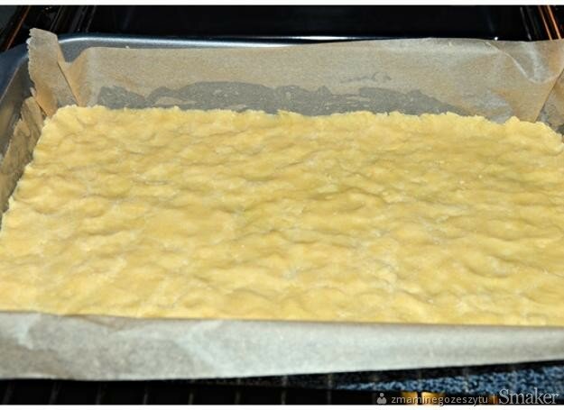 Najpierw zagniatamy ciasto. Potrzebujemy następujących składników: mąkę, masło, żółtki, cukier puder oraz proszek do pieczenia. Jak już zagnieciemy ciasto, należy przełożyć go na blachę do pieczenia, która uprzednio została wyłożona pergaminem. Piekarnik rozgrzewamy do 160 stopni Celsjusza, a następnie wkładamy do niego ciasto. Pieczemy przez około 25-30 minut do momentu zarumienienia się ciasta. Całość odkładamy do wystygnięcia.